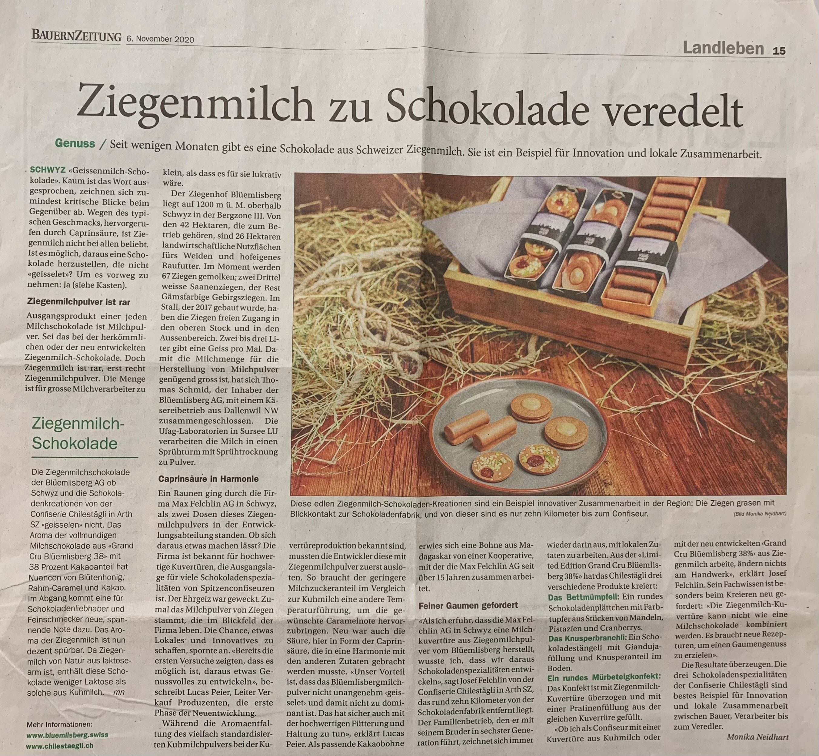 - Newspaper report: Confiserie Chilestägli from Arth refines goat's milk chocolate (German)
